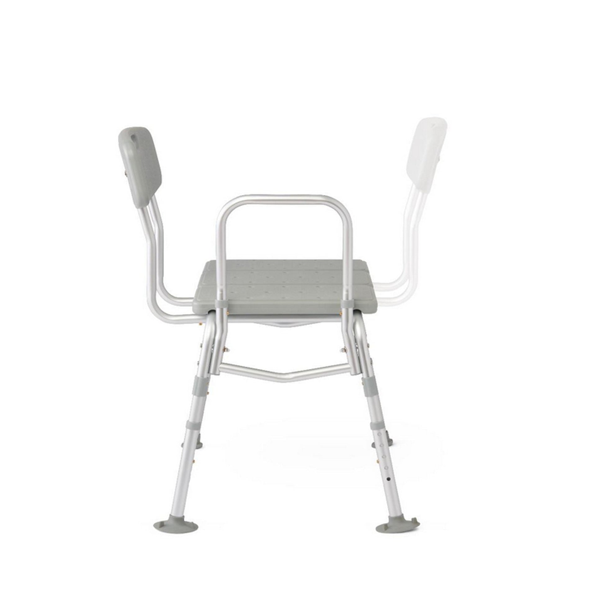 - Medline transfer benches feature slip-resistant suction cup feet for stability in the shower.