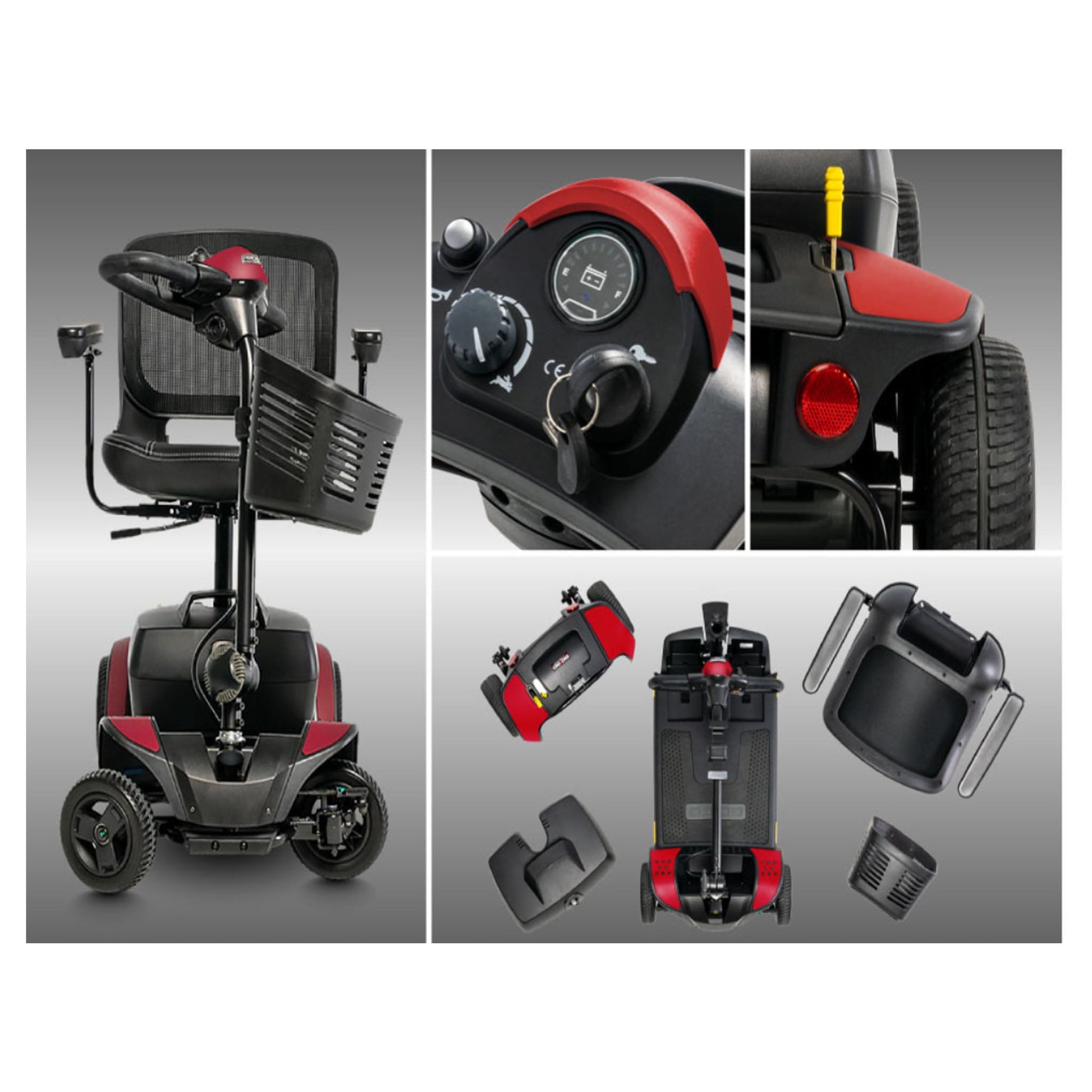 The Go Go Elite Traveller 2 4-Wheel boasts the smallest turning radius among all 4-wheel scooters at just 37”. Pride’s patented, intelligent-turning, iTurn Technology will provide you with 4-wheel stability and 3-wheel maneuverability. Effortlessly navigate your home, the store, and many other destinations with confidence. Removable color-through shrouds are included in Cardinal Red and Black so you can mix up your look anytime. For even more variety, six additional sets of shroud panels can be ordered at an additional charge. With a 300-lb. weight capacity, a top speed of up to 4.23 mph, and the potential to ride up to 13.8 miles per battery charge, you’ll be getting around in no time. And thanks to feather-touch disassembly, the unit easily separates into five pieces, making storage and transport a breeze.
